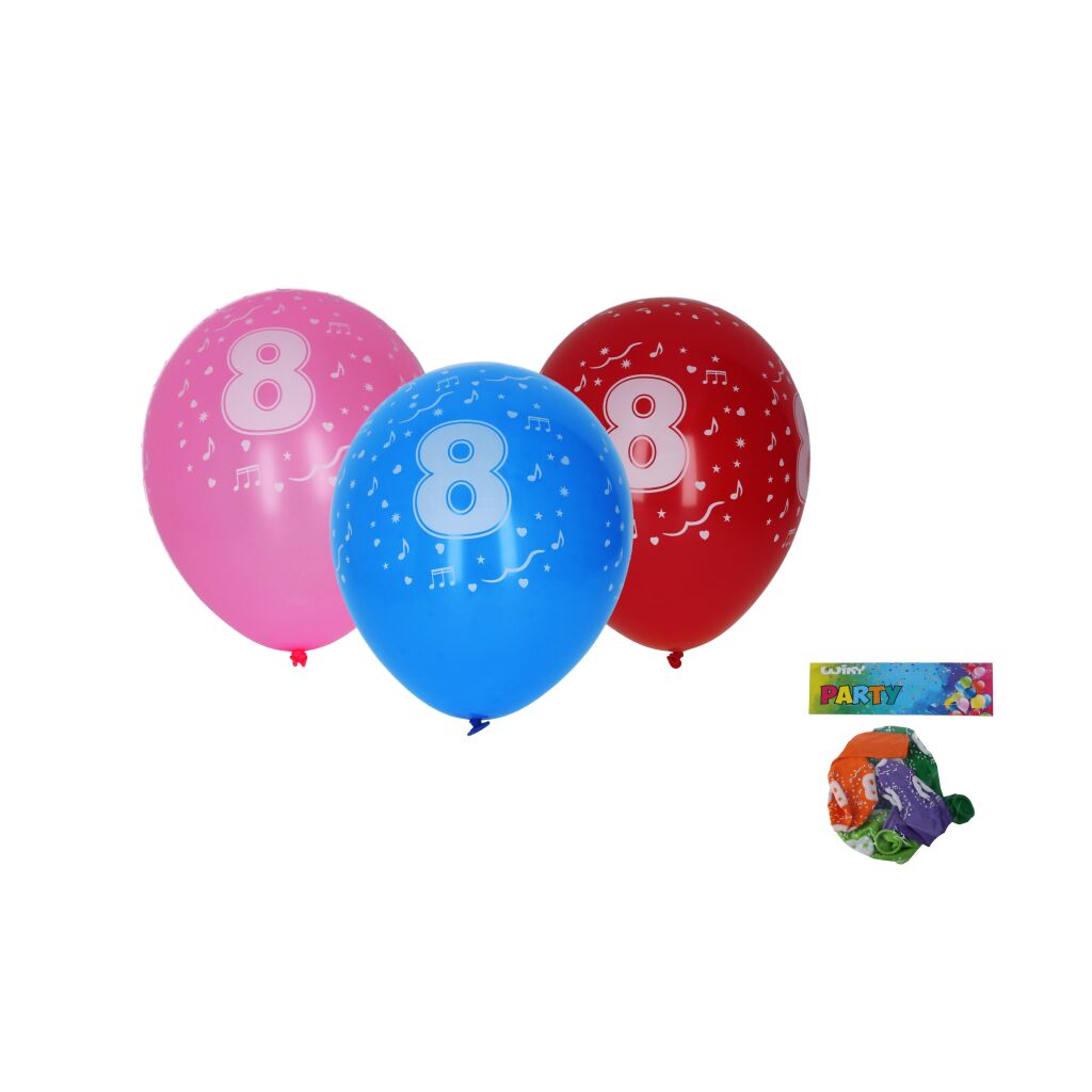 Balónek nafukovací 30cm - sada 5ks, s číslem 8
