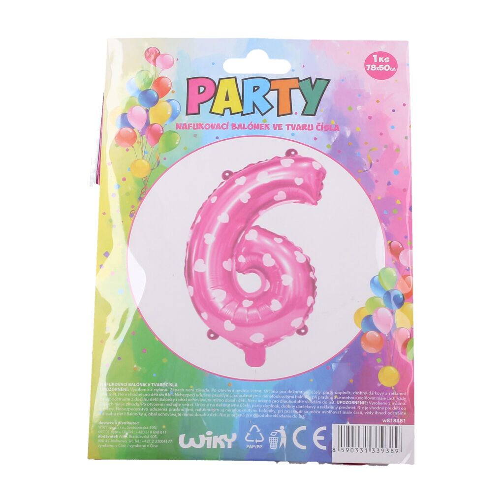 Balónek nafukovací - číslo 6 růžový