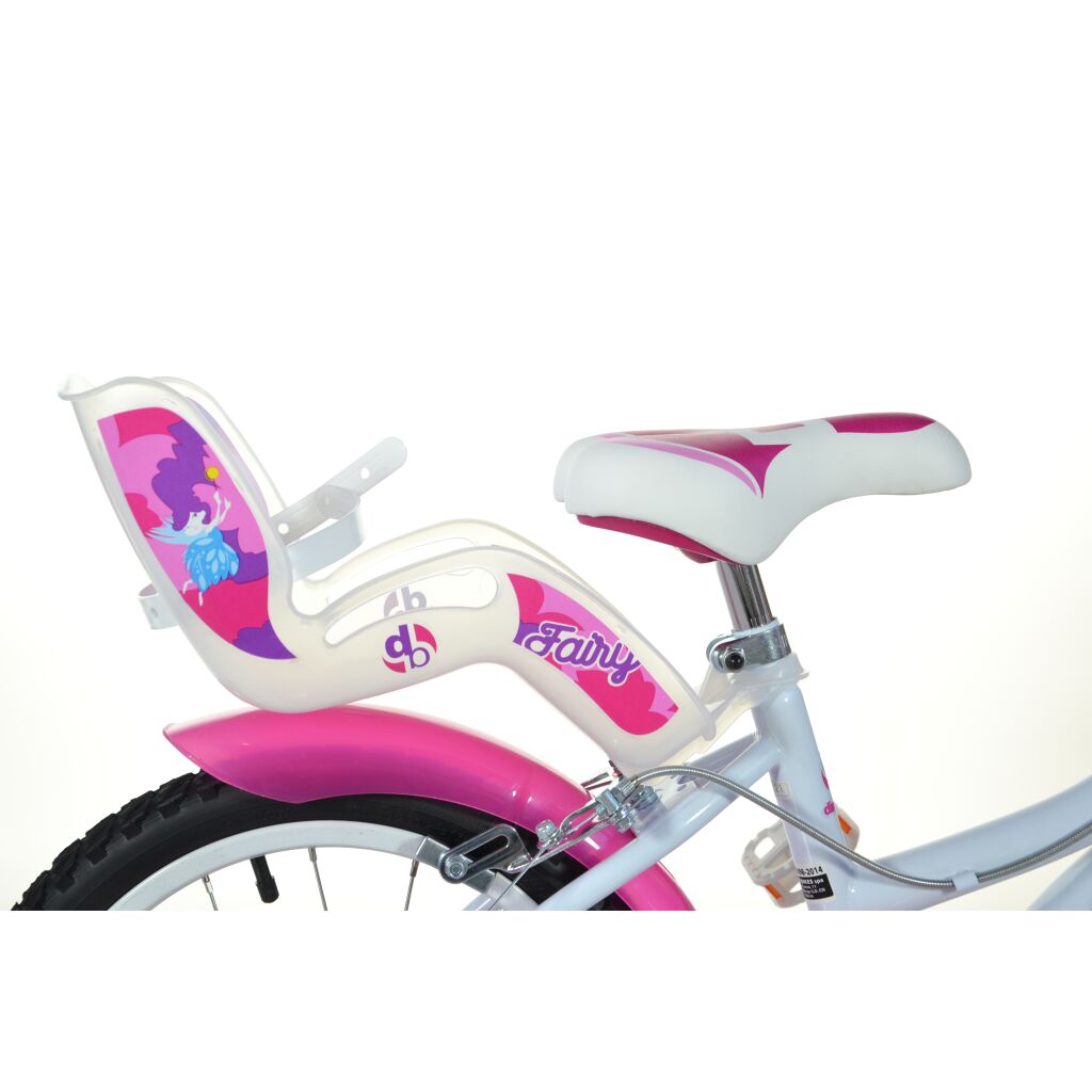 Dětské kolo Dino 16", výrobce Dino Bikes Italy se sedačkou na panenku, je kolo pro malé cyklistky, které si chtějí s sebou vozit i svou oblíbenou panenku. Má kvalitní, vzduchem plněné pneumatiky s drátovým výpletem ráfků. Kolo má 2 čelisťové brzdy a zvonek ■ Středové složení má kuličková ložiska a volnoběh.