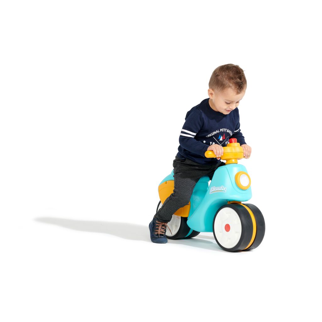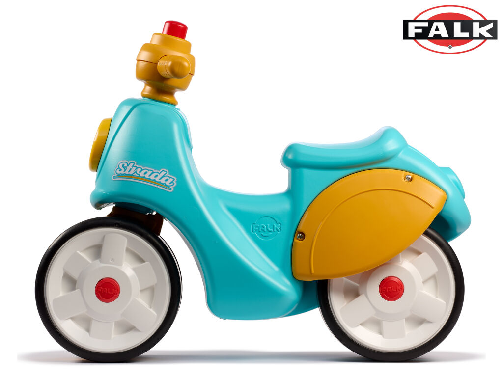Falk Odrážedlo retro Strada modro/oranžové s klaksonem Potěšte své dítě tímto skvělým balančním skútrem od Falk. Je vyroben z kvalitního plastu, má tichá kolečka a klakson na volantu. S ním si vaše dítě snadno osvojí rovnováhu, aby mohlo rychleji projít. Koloběžka je vhodná pro děti od 1 roku a její maximální nosnost je 30 kg. Rozměry: ...