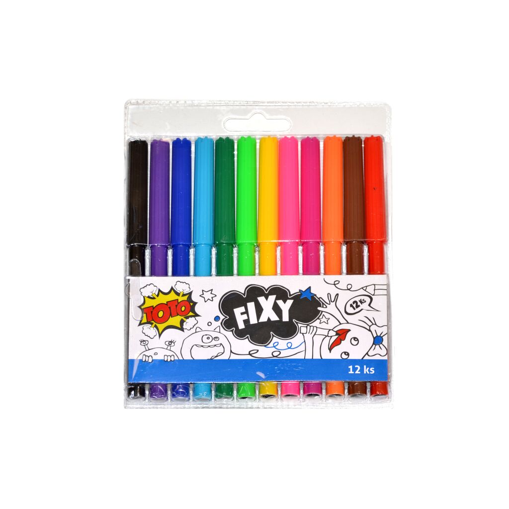Fixy, fixky, popisovače jsou důležitou pomůckou do školy i na doma. Děti je moc rádi používají, protože oplývají vysokou pestrostí a stálostí barev. fixy mají standardní vláknový hrot ideálním podkladem pro kreslení je papír Počet kusů: 12