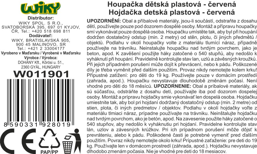 Houpačka je jedno z nejlepších řešení, jak udělat vašim dětem radost – jsou totiž velmi levné a děti mají houpačky rády. Můžete je zavěsit na dětskou sestavu, na strom nebo je umístit do bytu. Vzhledem ke své konstrukci a bezpečnostní pojistce je určena pro velmi malé děti, ale maximálně do 3 let věku. Rozměry : D: 36cm x Š: 38cm x V: 30cm Váha: 0,97kg Zavěšení 180cm Nosnost do 20kgU našich hraček garantujeme kvalitu a bezpečnost.