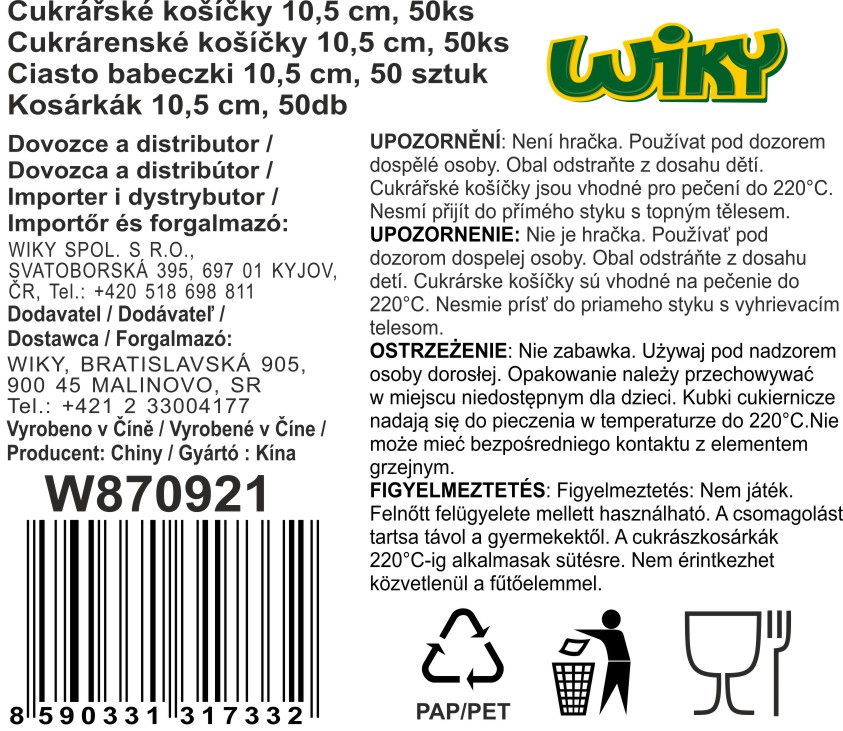 Košíčky cukrářské barevné 10,5cm (pr. 4,5cm, v. 3cm) - 50ks
