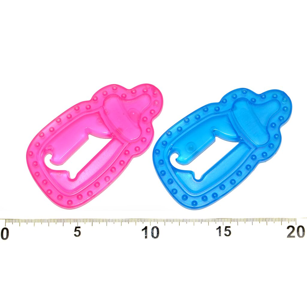 Chladící kousátko ve tvaru láhve je dodáváno ve dvou barevných provedeních - modrá a růžová. Kousátko je vyrobeno z měkkého materiálu, je plněný nezávadným gelem. Skvělá stimulace bolavých dásní.