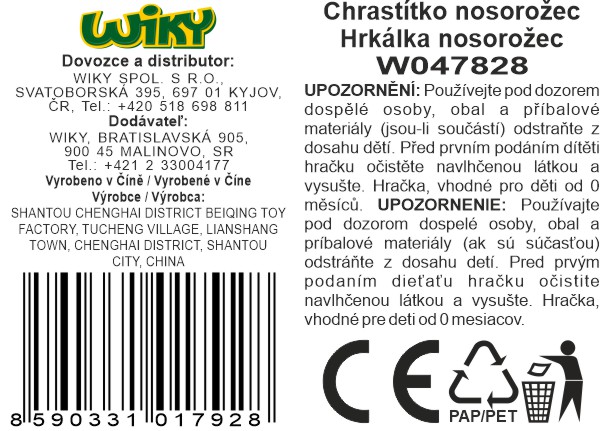 Maamaa Chrastítko nosorožec. Rozměry 14,5x3x21,5 cm.