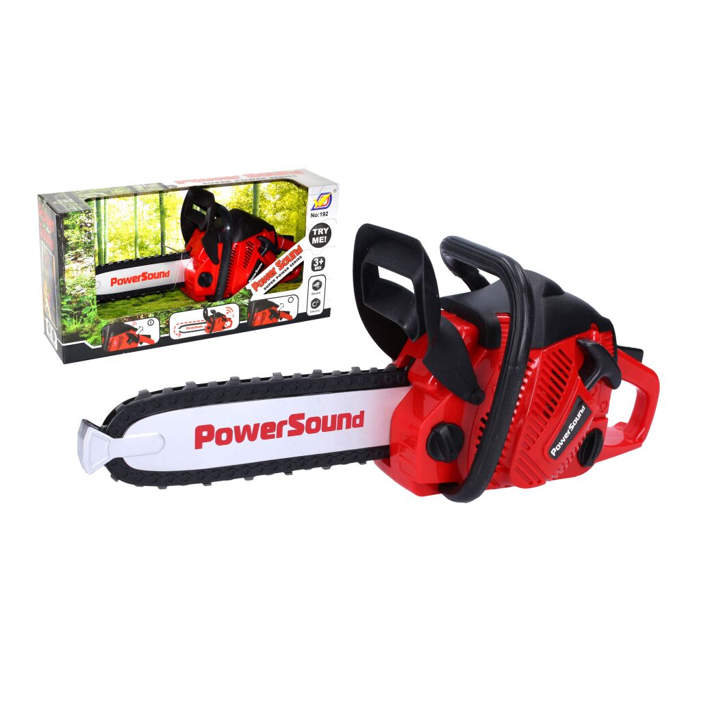 Díky této motorové pile se můžeš stát opravdovým dřevorubcem! Zatáhni lehce za startér a spusti pilu! Pila funguje skoro jako opravdová! Rozměry: 36 x 10 x 15 cm Doporučený věk: od 3 let Baterie 3xAA nejsou součástí balení.