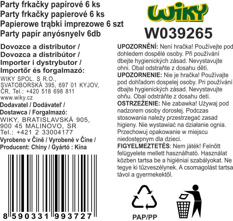 Papírové párty frkačky MIX Balení obsahuje 6 ks.