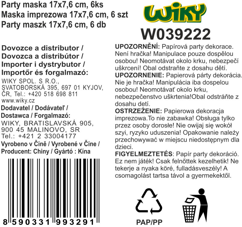 Párty škrabošky 17x7,6 cm. Balení obsahuje 6 ks škrabošek.
