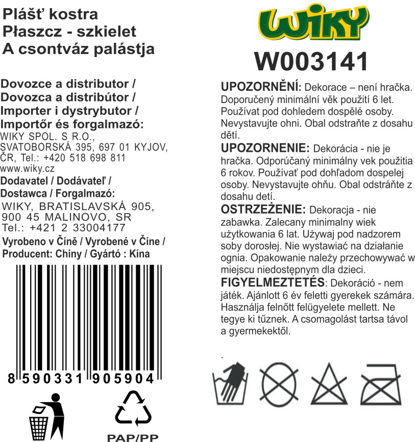 Černý plášť s kostrou bude skvělým doplňkem na halloweenskou párty! Délka pláště: 80 cm