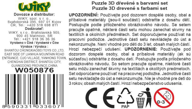 Puzzle 3D dřevěné s barvami Eifelova věž. Obsahuje 3D puzzle, sadu barev a štětec, obrázkový návod. rozměry složené věže: 10,5x10,5x22,5