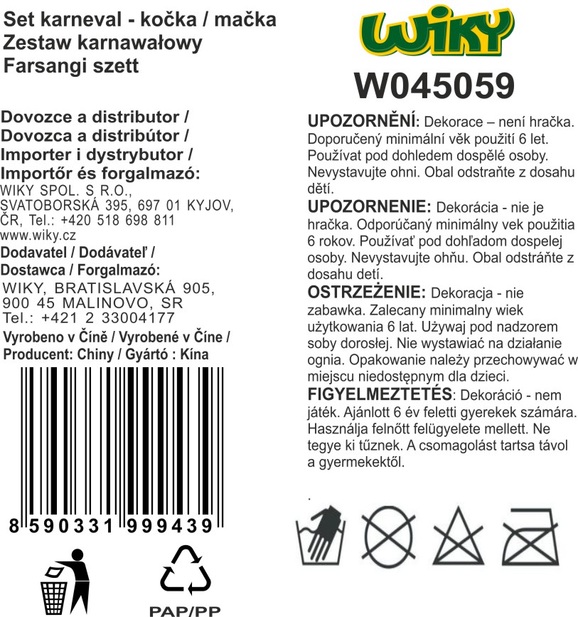 Set karneval - kočka černá. Součástí setu: čelenka, motýlek a ocas.