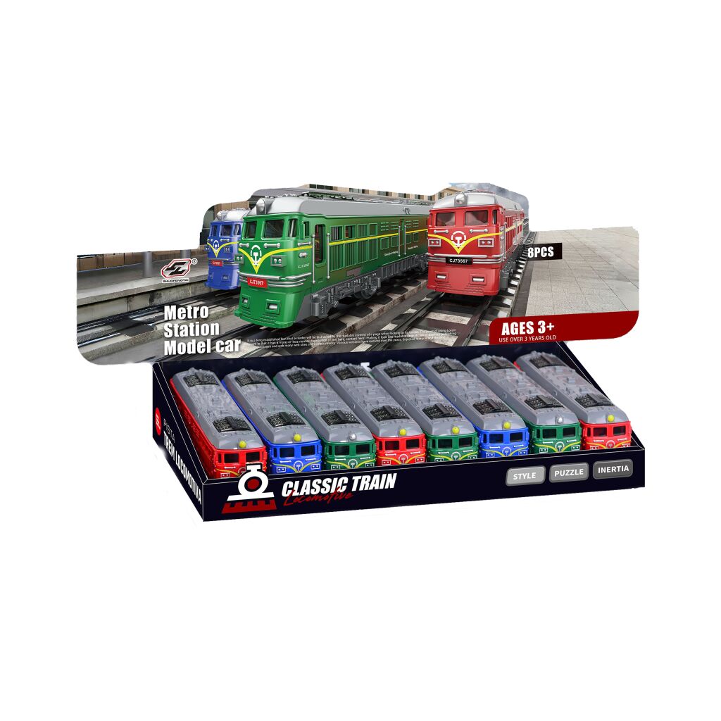 Vlak na setrvačník. Rozměry 18x4x6 cm.