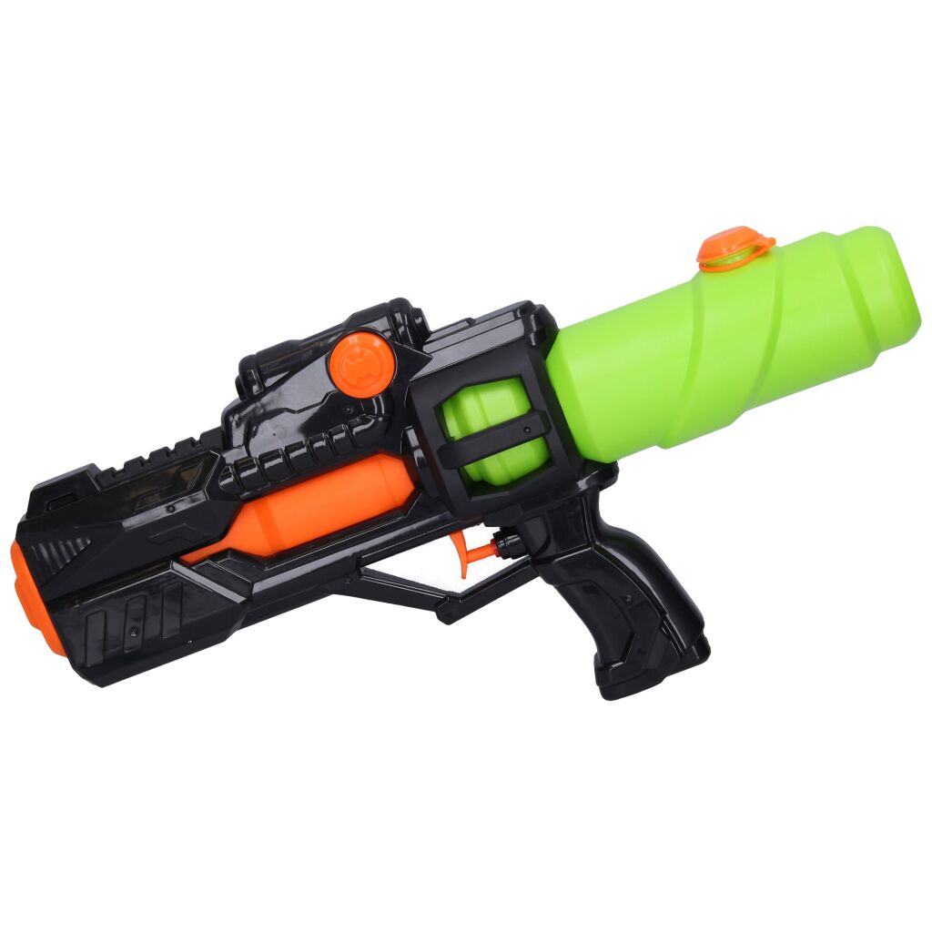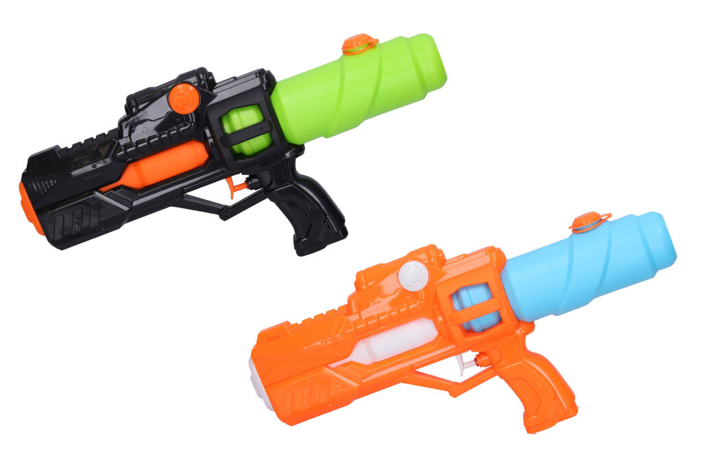 Ve vodě nebo na souši, všude číhá nebezpečí. Buďte připraveni a mějte po ruce svou vodní pistoli. Jen tak můžete nepřítele překvapit jako první. Napumpujte vodu a střílejte. Velikost 38 cm.