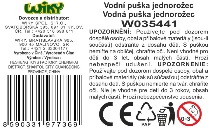 Vodní puška jednorožec 37 cm - Český obal