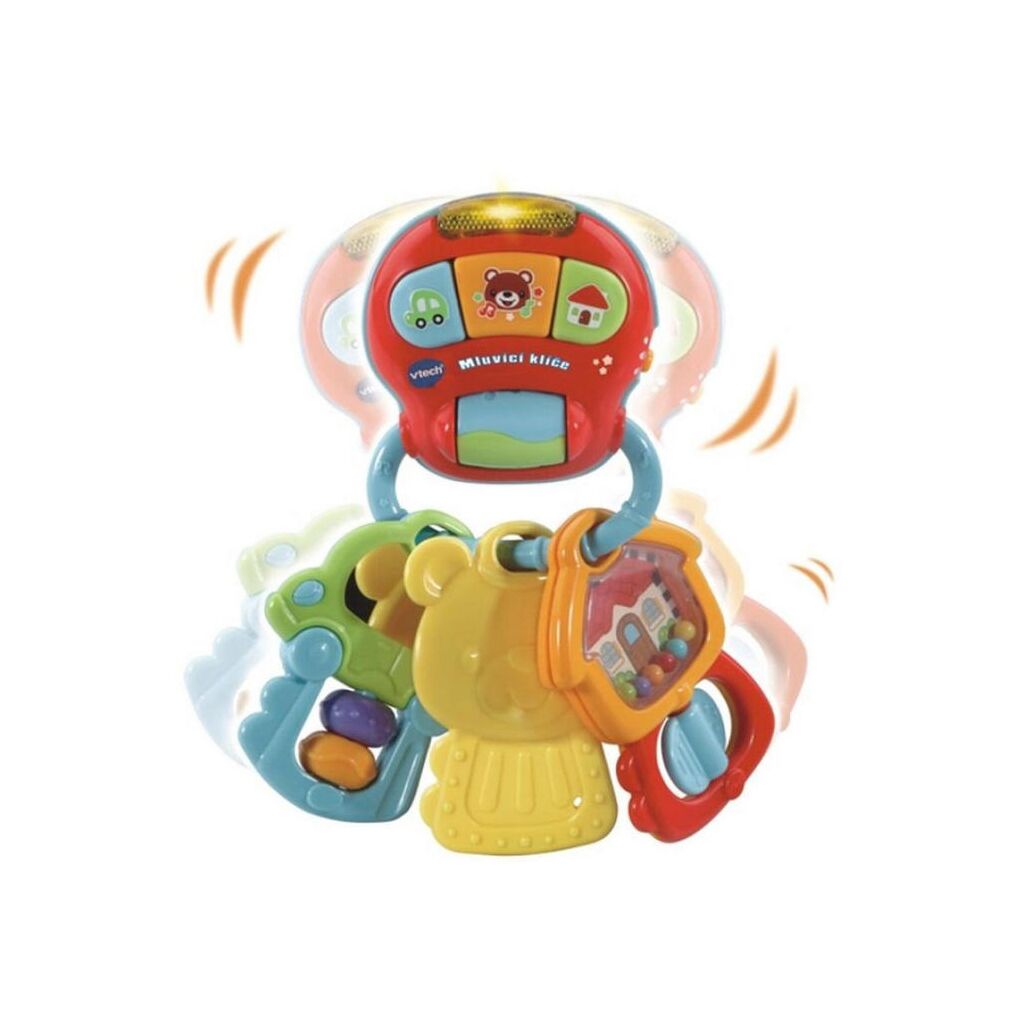 Interaktivní hračka vhodná pro miminka již od narození. Mluvící klíče zaujmou především zvukovými efekty, milými melodiemi a písničkami. Klíče slouží i jako „kousátko“ pro masírování dásní dítěte, tak aby první zoubky moc nebolely. Blikající světýlko a kutálející se korálky přitahují pozornost dítěte a rozvíjí stimulaci očí. aktivace ...